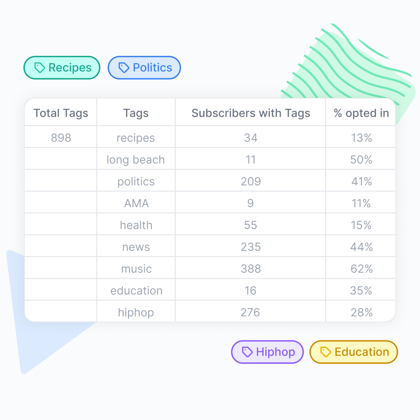 Understand your audience at a deeper level. See which segments your subscribers most commonly fall into so you can craft personalized, relevant, and high-performing messaging.