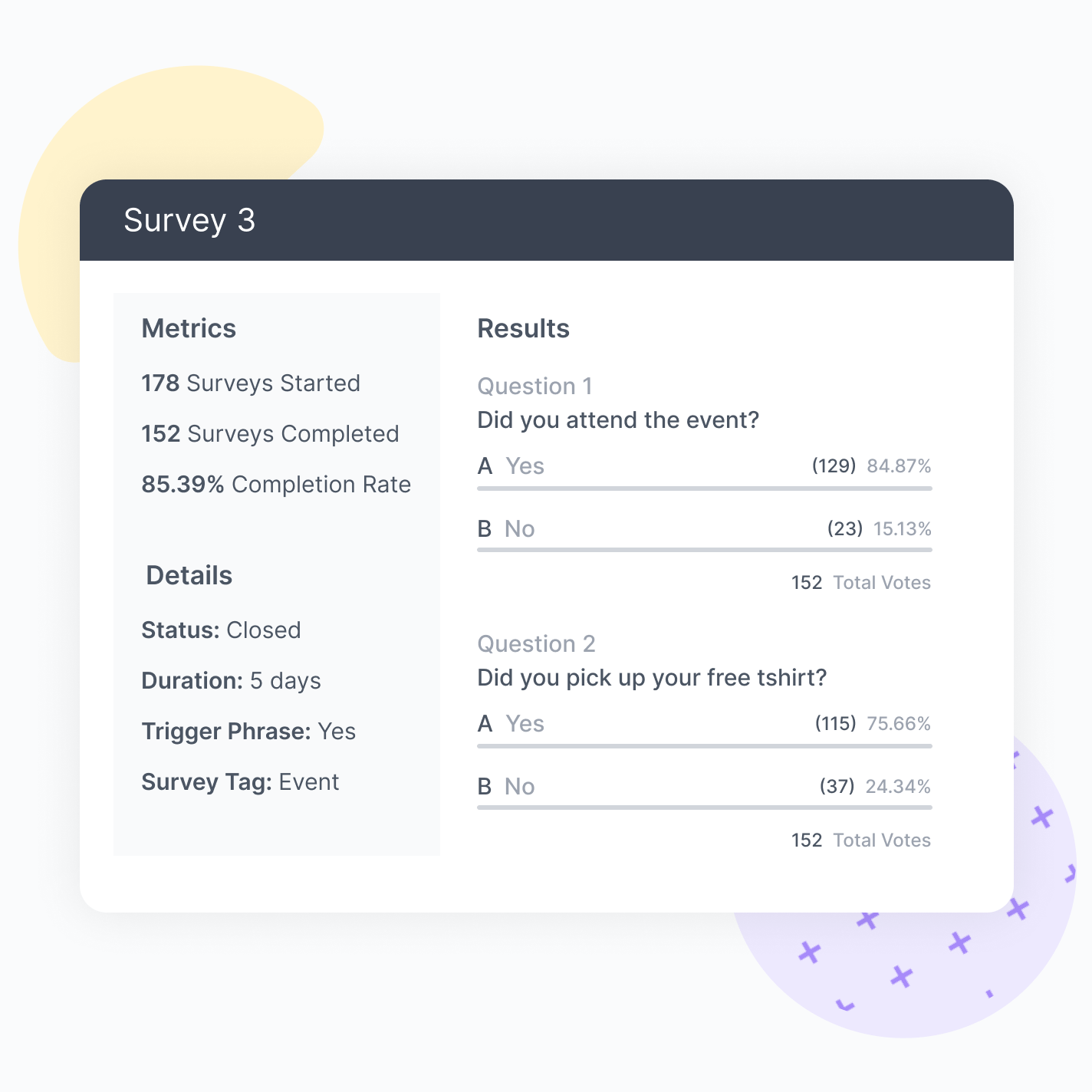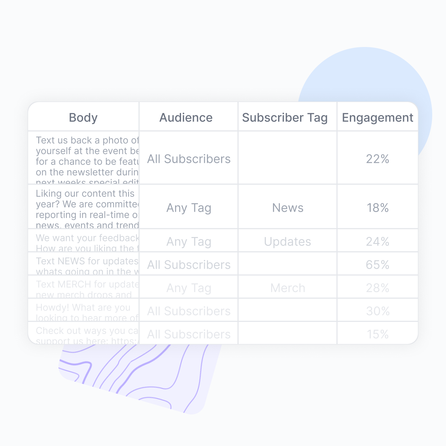 Turn feedback into action. Access real-time results from SMS surveys and export clean, first-party subscriber data to inform content, campaigns, and strategic decisions.