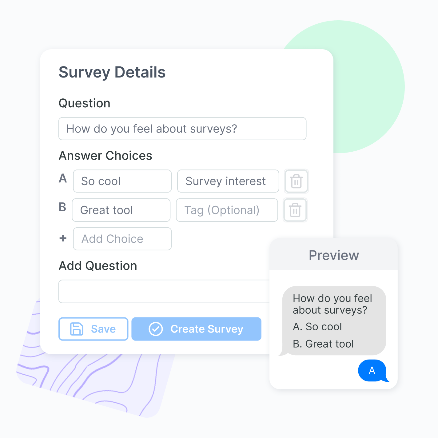 Get real-time insights. Send quick, interactive SMS surveys to learn what your audience wants, gather feedback, and understand subscriber preferences instantly through multiple-choice responses.