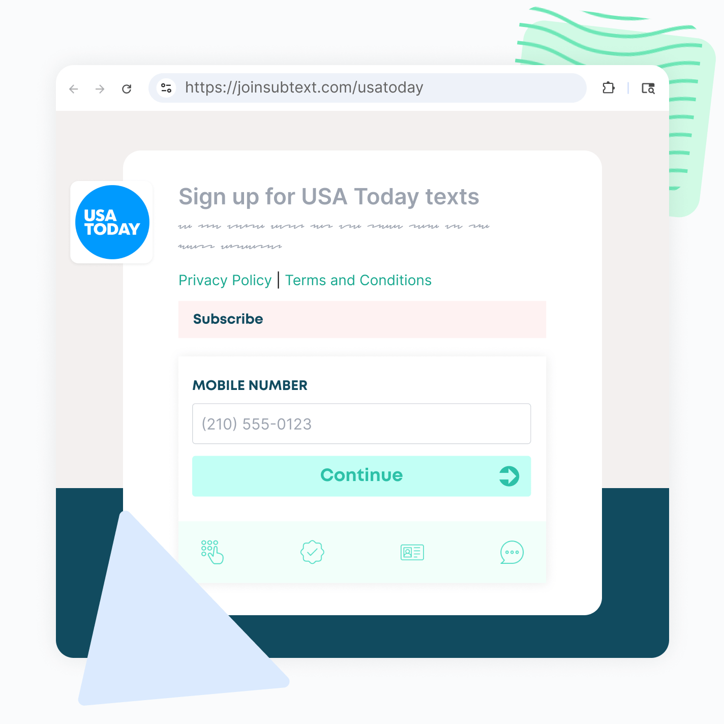 Make a strong first impression. Create branded landing pages that highlight your SMS channel and make it easy for fans to discover you and subscribe.