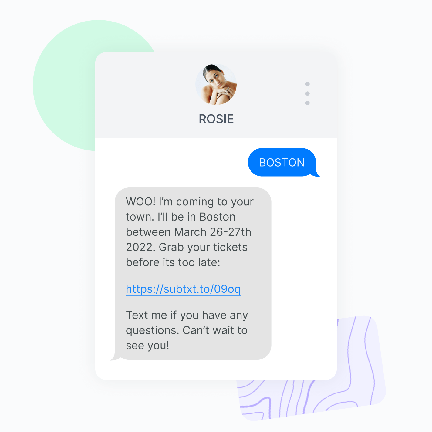 You’re building something worth following — and Subtext gives you the tools to grow it. Our platform offers flexible, customizable SMS subscriber growth features that integrate seamlessly with your existing audience strategy, helping you expand your text list and strengthen your owned community.
