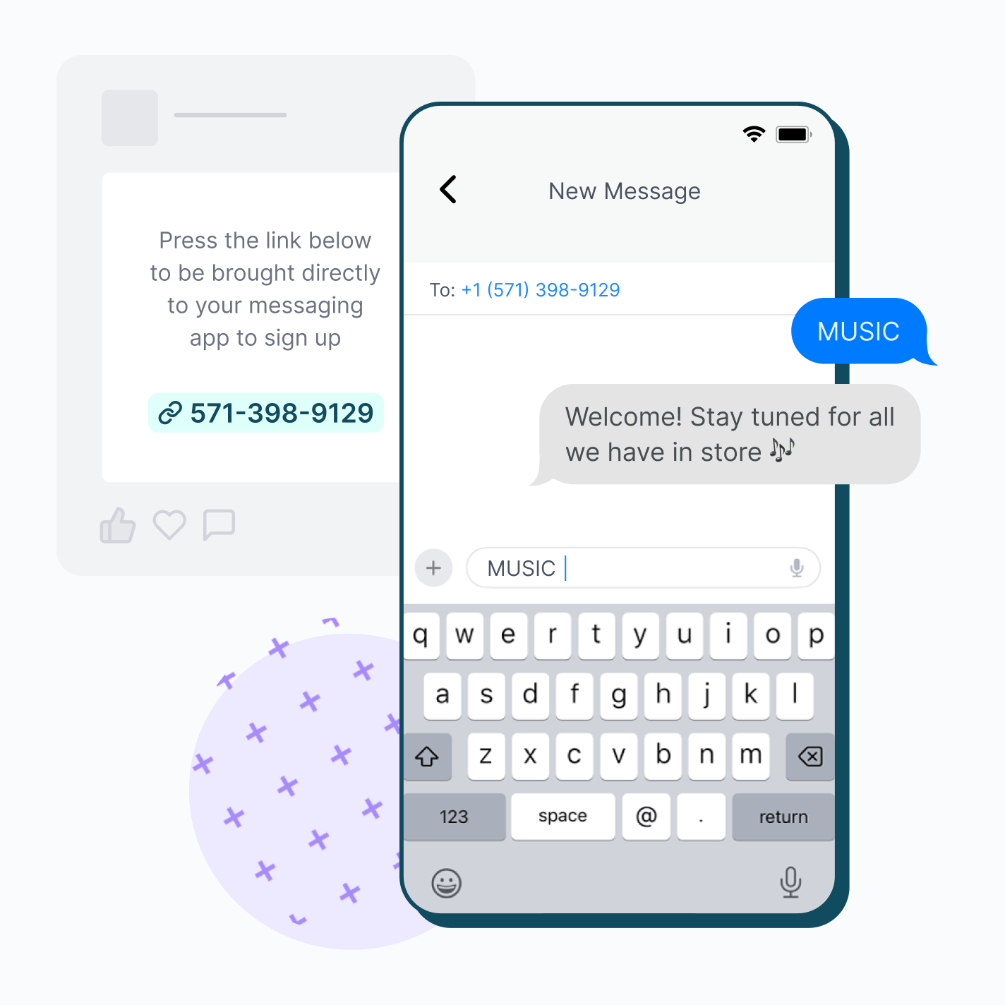 Turn interest into action in seconds. Subscribers can opt in simply by texting a keyword — perfect for live events, podcasts, social posts, or calls to action across any channel.