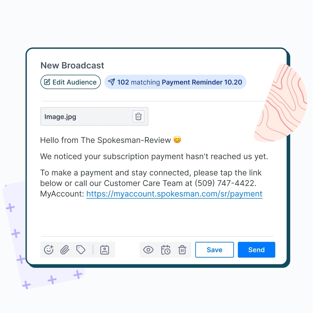 Create trusted, interactive spaces for your readers. Whether it’s daily streaming picks or real-time election coverage, SMS lets you connect personally, answer questions, and strengthen your brand relationship with every text.